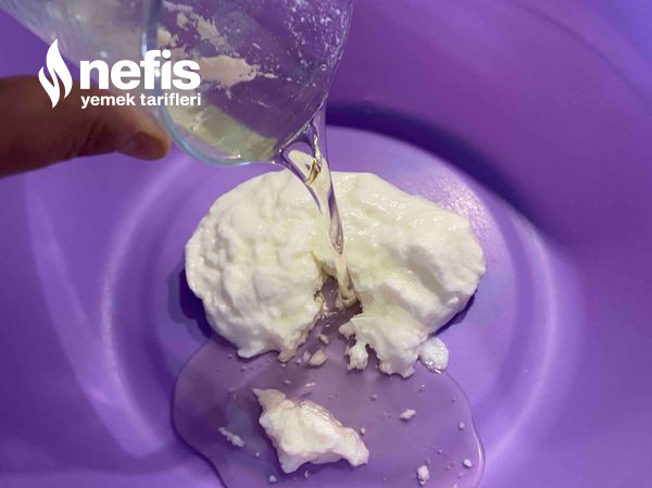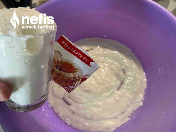 - Sıvıları karıştırıp, unu ve kabartma tozunu ekleyerek yumuşak bir hamur yoğuralım.