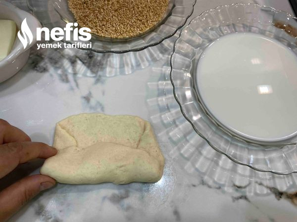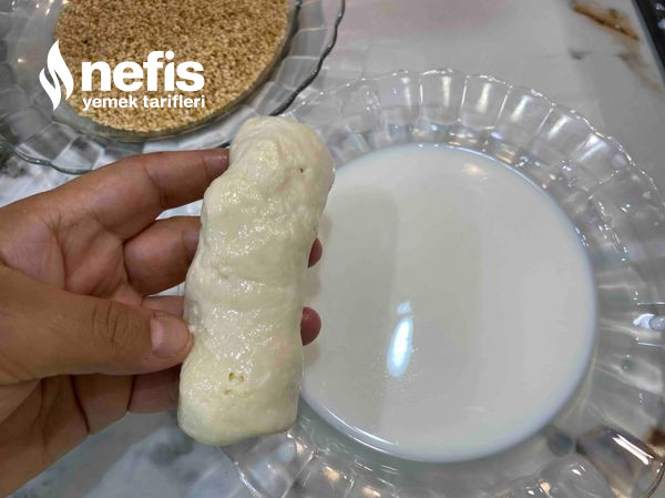 - Önce süte sonra susama üst kısmını batıralım, bıçakla çizikler atalım.