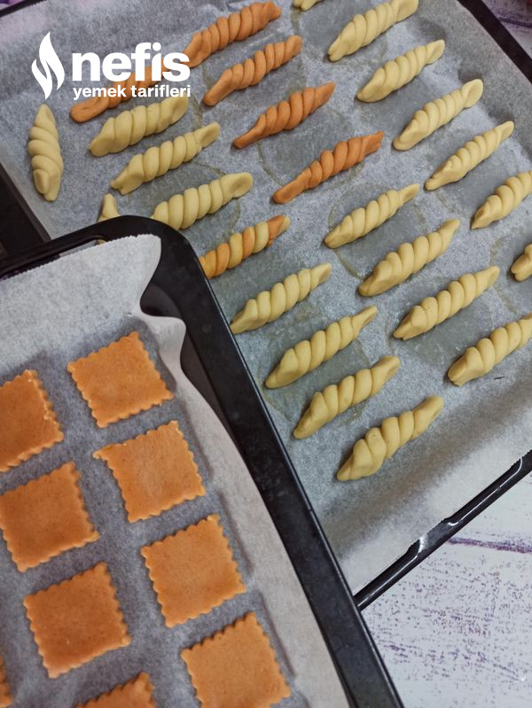 - Önceden ısıtılmış 175 derece fırında 20 dk kadar pişirelim (bazı fırınlar erken ya da geç pişirebilir, denetimli bir formda çok kızarmadan altları hafif pembeleştiyse alalım) ve çay saatlerinizin vazgeçilmezi olan bu pratik tuzlu kurabiyeleriniz servise hazır!.
