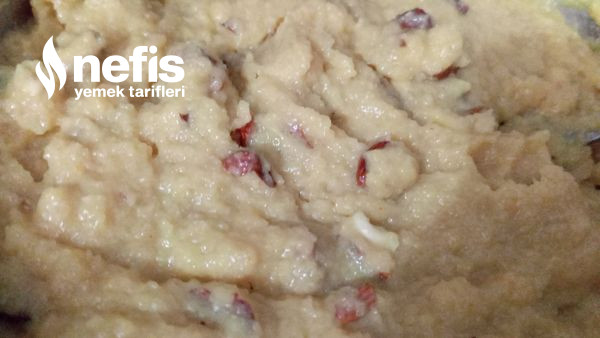 - Muzlarımızı ezip, sütümüzü, irmiğimizi, zerdeçalımızı ve vanilinimizi ekleyip, kıvam alana kadar pişiriyoruz. Çabucak akabinde 3 kesime ayırdığımız bademlerimizi ekliyor ve akabinde tereyağını koyup, karıştırıyoruz ve soğumaya alıyoruz.