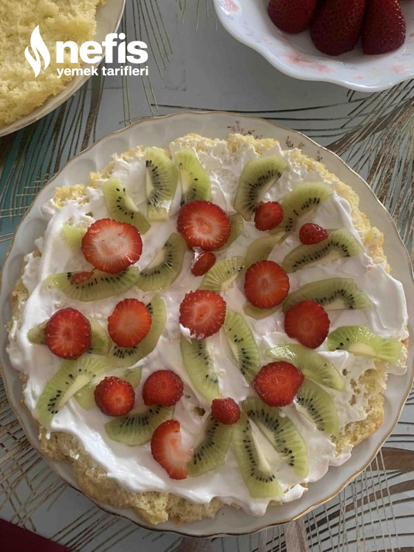 - Daha sonra soğuyan pastamızın içine istediğiniz gereçleri koyun🥝🍓
