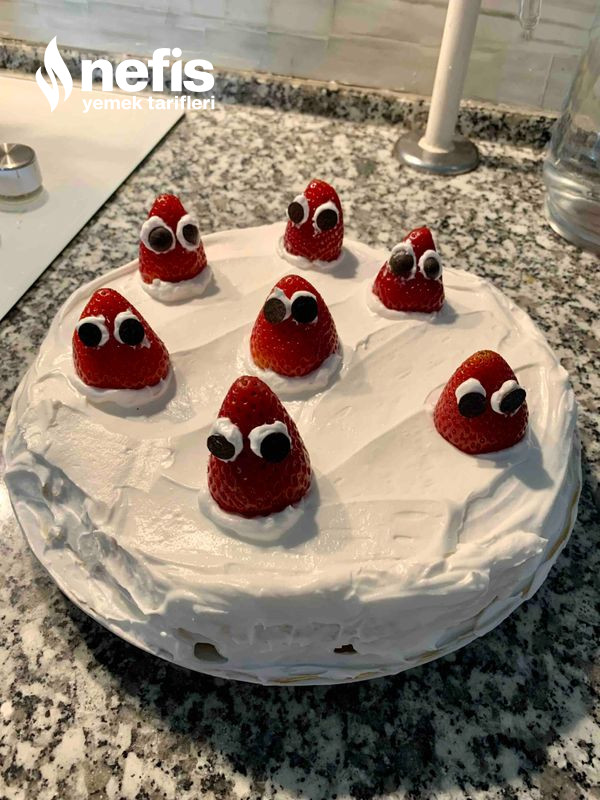 - Son olarak çileklerin üstüne kremşanti ve damla çikolata ile göz yapın 🍰