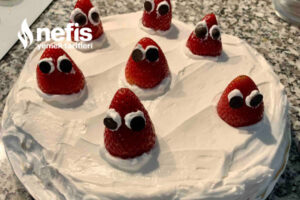 - Son olarak çileklerin üstüne kremşanti ve damla çikolata ile göz yapın 🍰