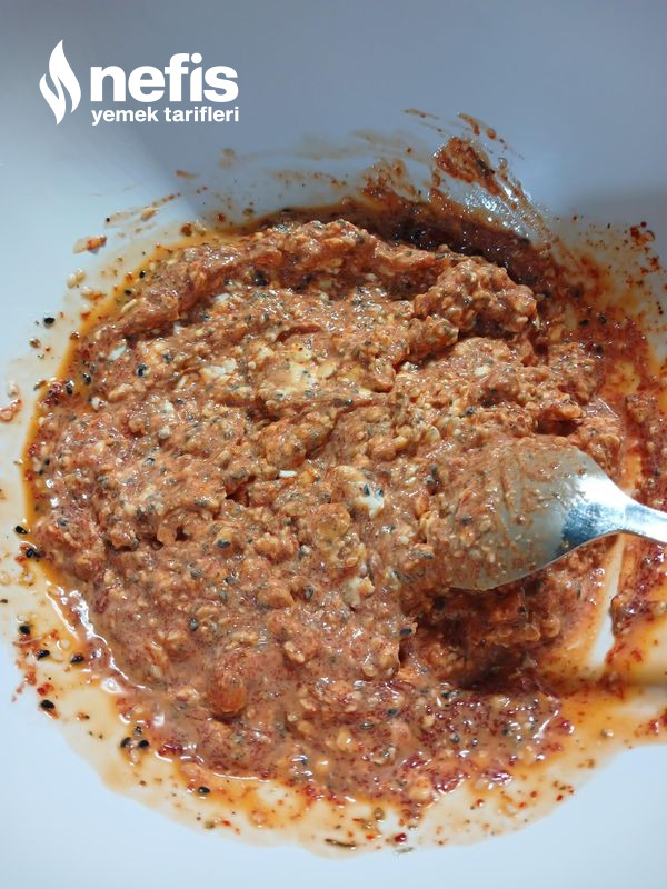 2. Sıvıyağ, sirke, şeker, domates salçası, toz biber, karabiber, kekik, çörek otu, susam ve tuzu da alıp güzelce karıştıralım.