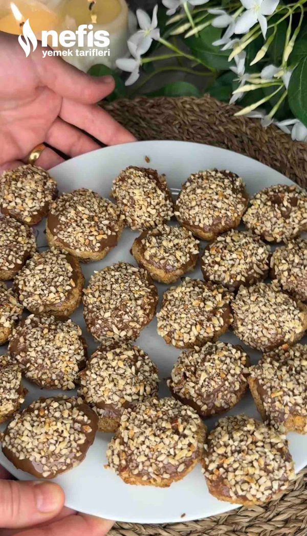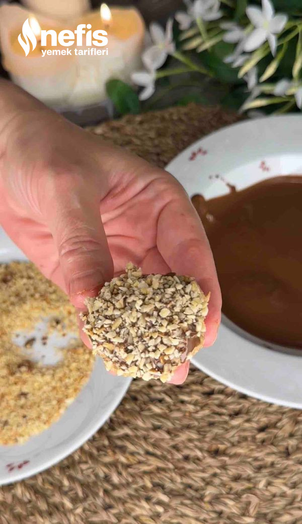 4. Piştikten sonra evvel eritilmiş çikolataya banıp daha sonra fındık kesimlerine banıyoruz. Bir müddet soğuduktan sonra yemeye hazır olacaktır.