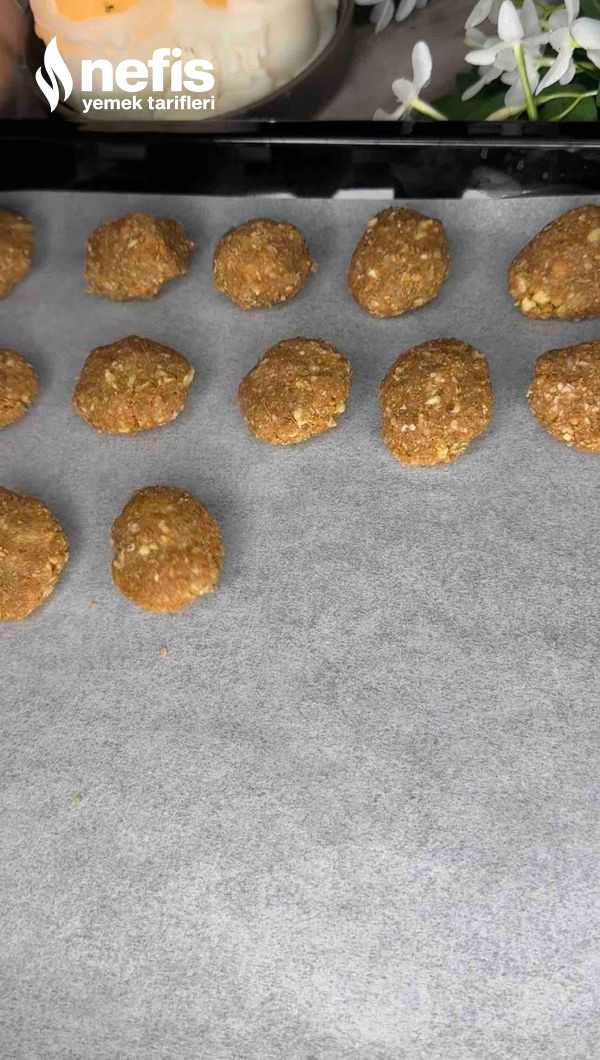 2. Veviz büyüklüğünde yuvarlayıp tepsiye diziyoruz.