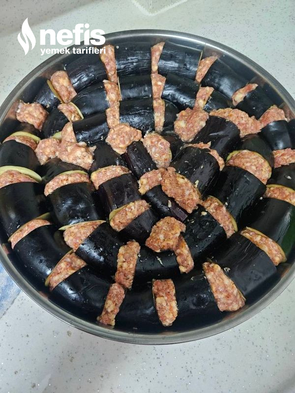 3. Kıyma cevizden daha büyük modüller alarak tepside göründüğü üzere balcanların ortasına konulur.