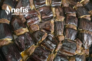 6. Üzerine 4’e bölünmüş domatesler kapatılır iki tepside evvelce ısıtılmış 200 derece fırına verilip pişirilir.