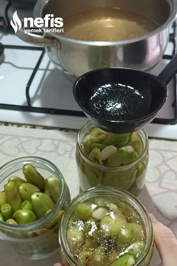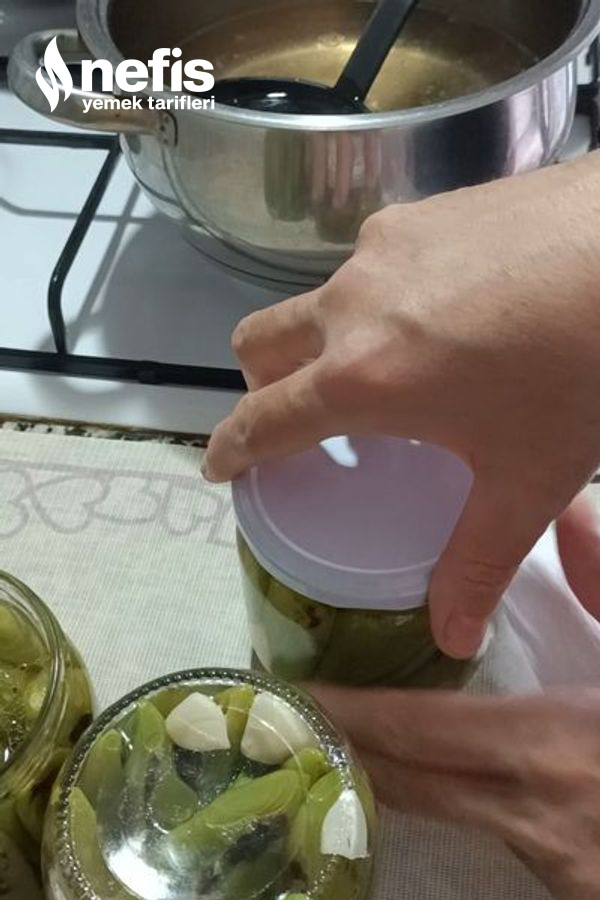- Balık biberle doldurduğum kavanozun üzerine yeniden sarımsak ekliyorum ve kaynayan karışım suyundan dolduruyorum sıkıca kapağını kapatıp aykırı çeviriyorum.