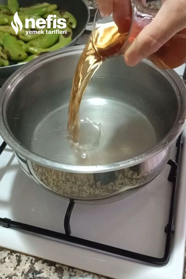 - Başka bir tencereye 1 litre su koyup kaynatıyoruz üzerine sirke yağ limon suyu kaya tuzu ve şekeri ilave edip bir kadro kaynatıp kapatıyoruz.
