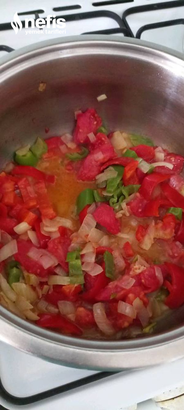 - Soğanı çok ince olmasına gerek yok doğrayın zeytinyağında kavurun biberleri ekleyin kavurun en son domatesi ekleyip biraz kavurun balık suyunu ekleyin pişirin.