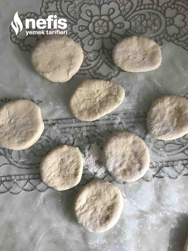- Hamurun altına un serpip açıyoruz çok ince olmasın bardağın ağzıyla yuvarlaklar çıkartıp bol yağa atıp, kızartıyoruz.