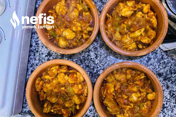 11. Tavuk sote için söylediğimiz müddet sonunda soteyi alıp yağladığımız güveç kaplarımıza koyalım.
