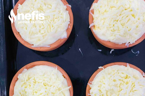 12. Isıttığımız fırına atıp 5 dk pişirilelim, 5 dk sonunda fırından alıp patates püresini üzerine ekleyip, akabinde başemal sosunu ek edip en son kaşar ekleyip fırına atalım.