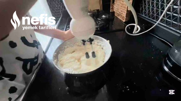 8. Krema soğuduğunda içine vanilini ve labneyi ekleyip biraz karıştıralım. Sonra köpürene kadar mikserle çırpalım.