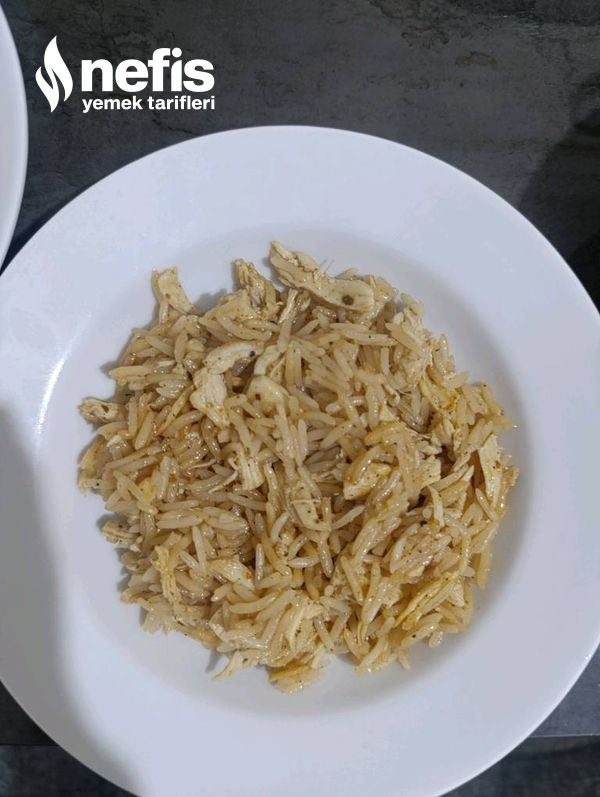4. Çekmesine yakın daha evvelce haşlanan tavukları (tavukları haşlandıktan snra tereyağında az kavurup tavuk çeşnisi kattık) ekleyim ve suyunu çektirip servis edelim.