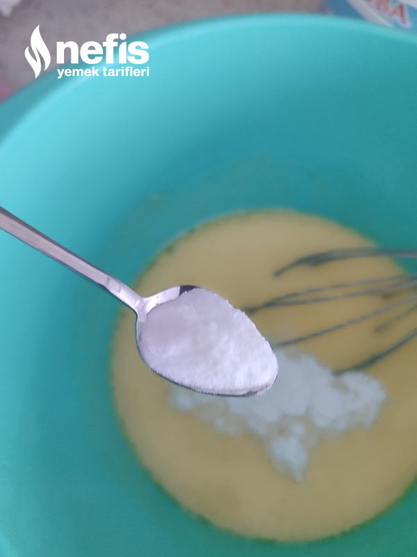 - Ardından kabartma tozumuzu, karbonatımızı ve sirkemizi koyuyoruz, son kere çırpıyoruz sonra unumuzu denetimli bir formda ekliyoruz( un markasına nazaran bardak ölçümüz değişkenlik gösterebilir) elimize yapışmayan hamur meskenlerine kadar azar azar un ekleyerek yoğuruyoruz.