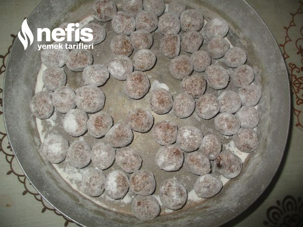 - Un serdiğimiz bir tepsiye köfteleri koyalım yuvarlayalım.