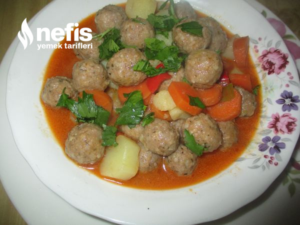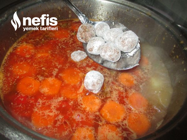 - Su fokurdayıncaya köfteleri ekleyip karıştıralım.