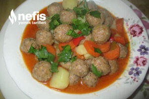 - Su fokurdayıncaya köfteleri ekleyip karıştıralım.