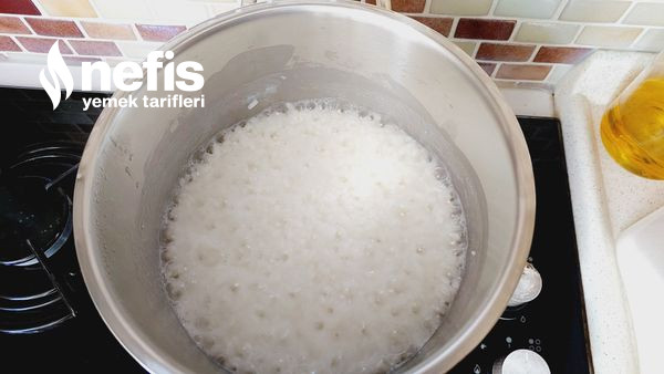 - Öncelikle pirinci haşlamakla başlayalım, derin bir tencereye pirinç ve suyu alalım pirinç büsbütün suyunu çekene dek pişirelim.