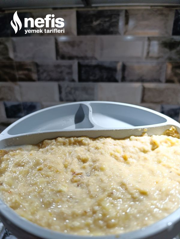 - Yulaf ezmesi su ile lapa haline getiriniz içerisine elma rendenin en küçük yeri ile yapınız muzu ve hurmayı çatalla eziniz.