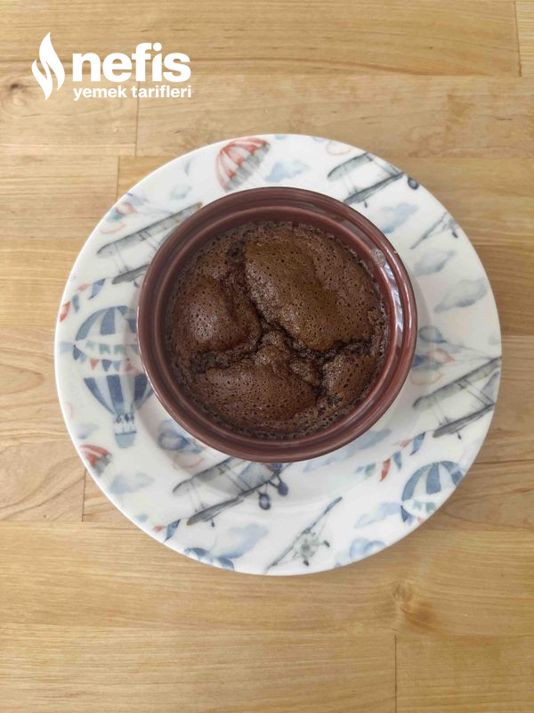 - Sonrasında pişirmek istediğimiz kaba koyup içine damla çikolata seriyoruz ( yerine ceviz fındıkta koyabilirsiniz ). Ben suffle kabı kullandım birazda yağladım yapışmasın diye siz yağlı kağıt koyabilirsiniz.