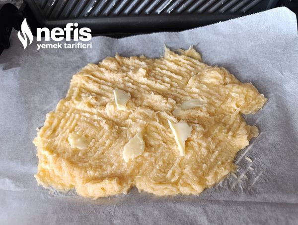 - İçerisine kaşar peyniri ekliyoruz tost makinesine yağlı kağıt koyup, ikiye katılıyoruz tostumuzu çatalla yayıyoruz ince katman halinde.