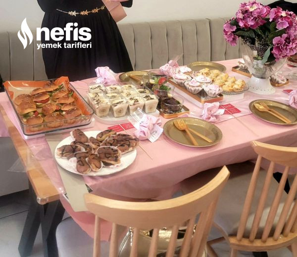 Poğaça: geceden pişirdim. Parti günü ortadan kesip domates ve yeşillik ekleyerek sandviç üzere hazırladım.