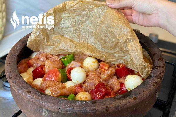 - Islatılmış yağlı kağıt ile üzerini örtüp evvelce ısıtılmış 200 derece fırında 40 dk örtülü pişirip yağlı kağıdı aldıktan sonra üstü kızarana pişirin.