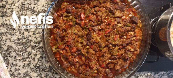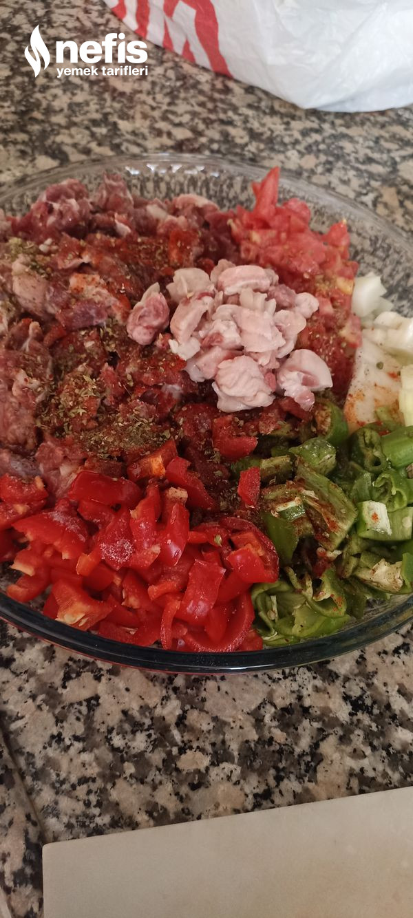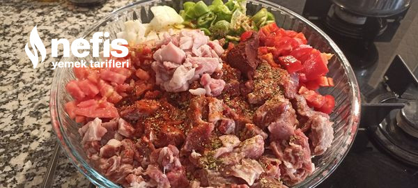 - Kuşbaşı ve kuyruk yağını da ekleyin, salça ,baharatlarla birlikte tüm gereçleri güzelce karıştırın.