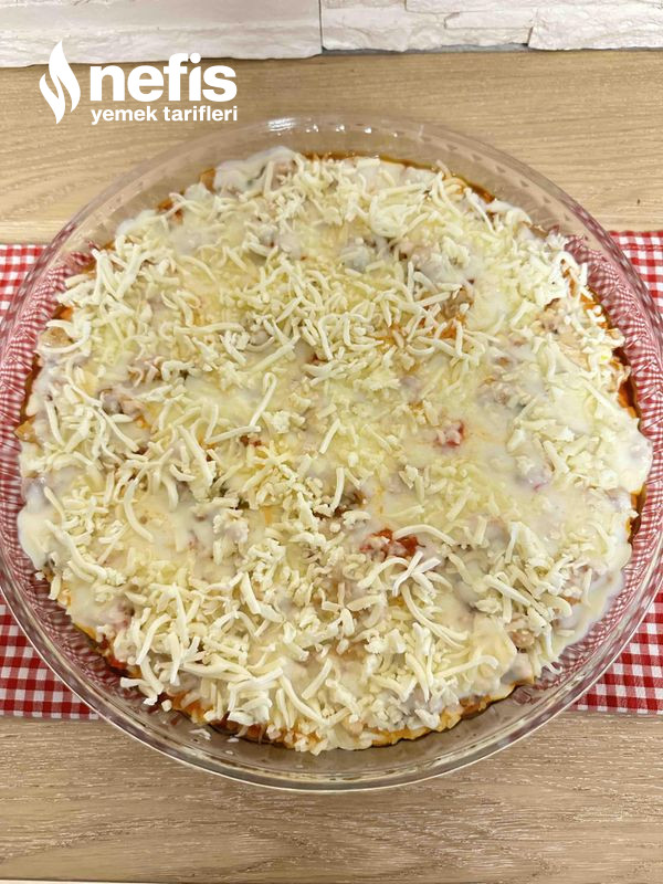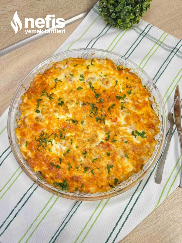- Üzerine rendelenmiş kaşar peynirimi her tarafına serperek evvelce ısıtılmış 180 derece fırında peynir eriyip kızarana kadar pişirelim. Yemeği sıcak servis etmenizi tavsiye ediyorum deneyecek arkadaşlarıma afiyet olsun.