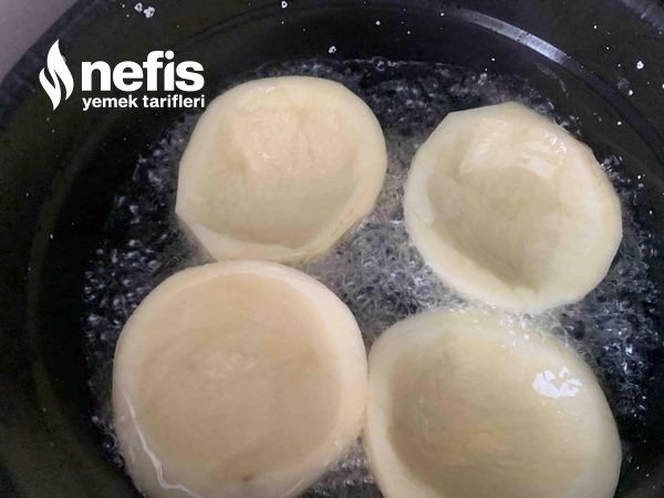6. Patatesleri soyup ortadan ikiye keselim ve ortalarını güzelce oyalım.