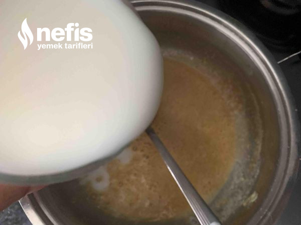 4. Unumuz kavrulduktan sonra sütü ekleyerek daima karıştıralım.
