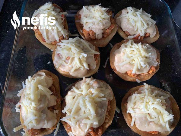 13. Üzerlerine beşamel sos ve kaşar peyniri serpelim.