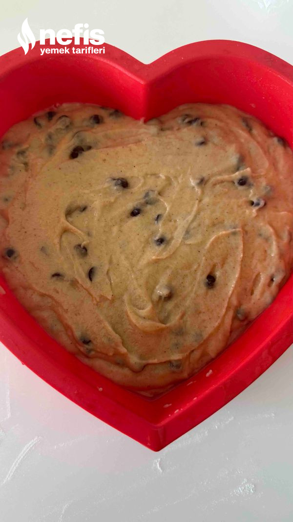- Damla çikolatayı ek edip karıştırın ve hamuru yağlayıp unladığınız kek kalıbına dökün.