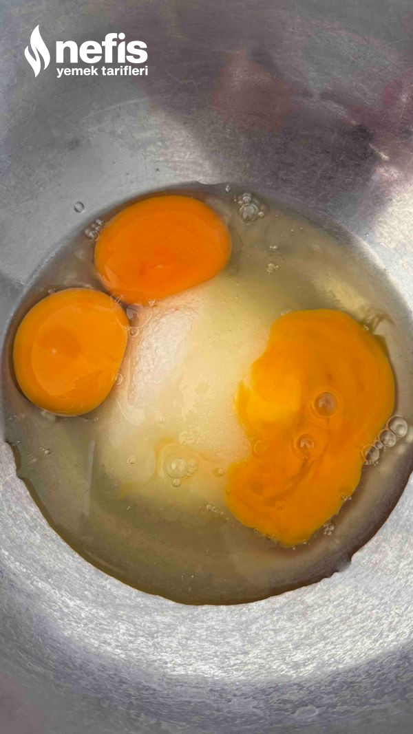 - Bir kaba yumurta ve şekeri ekleyip mikser yardımıyla beyazlaşana kadar çırpın.