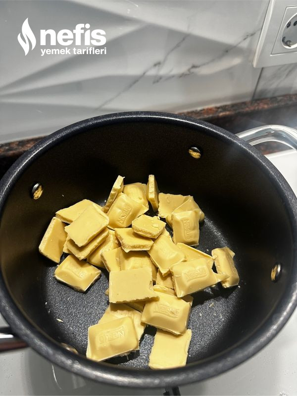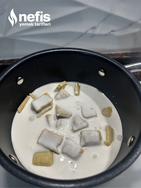 - Soğumaya bırakıp krema ile beyaz çikolatayı başka bir tencerede ocak orta ateşte olacak biçimde eritiyoruz.