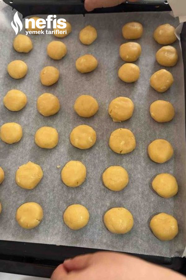 - Hamurdan ceviz büyüklüğünde kesimler koparıp, tepsiye dizelim.