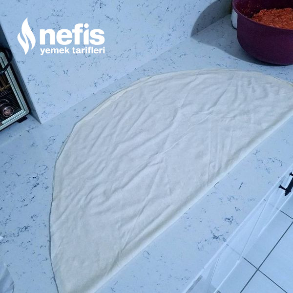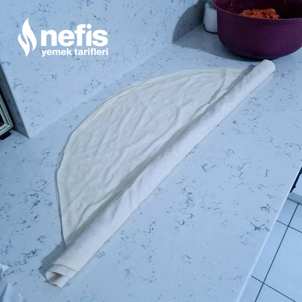 6. Yufkayı düz bir tabanda açın ikiye katlayın.