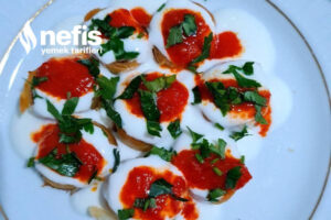 14. Pişen beytileri servis kabına alıp üzerine sarımsaklı yoğurt ekleyip sonra domates sosunu ekleyin. Son olarak minik minik doğradığınız maydanozları serpin. Afiyet şifa olsun.