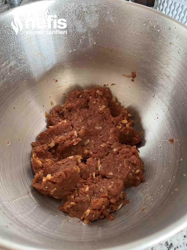 1. Öncelikle soğan ve kapya biberi ufak ufak doğrayıp bir kaba alıyoruz ,kıymayı ve başka köfte gereçlerini ekleyip güzelce yoğuruyoruz ve dolapta köfte harcını 1 saat dinlendiriyoruz.