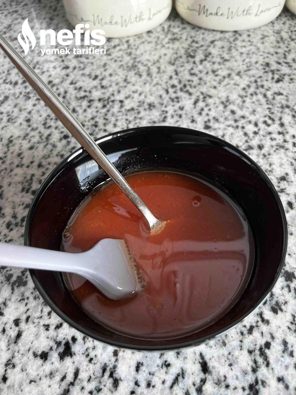 2. Bir kapta salça ,sıvı yağ ,su ve tuzu karıştırıyoruz.