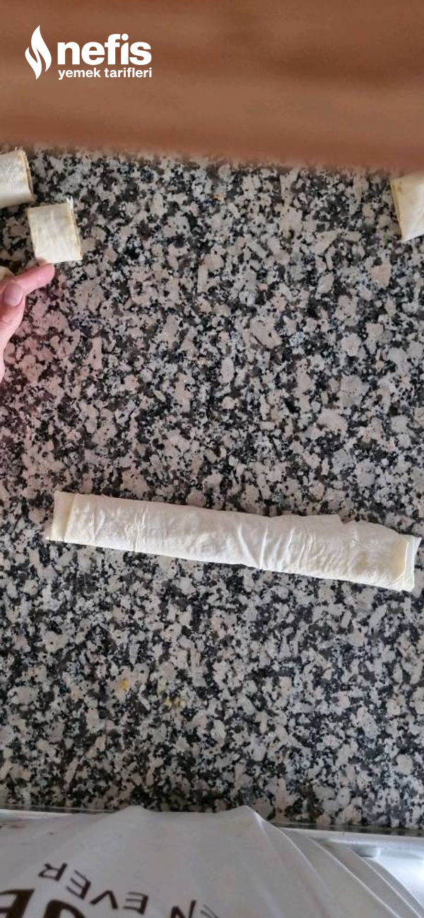- Yufkalardan bir adedini alarak ikiye kesiyoruz.