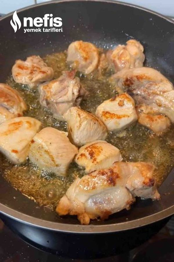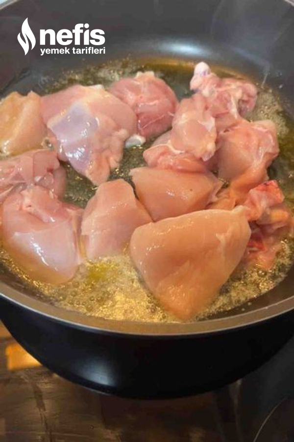 - Uygun bir tavaya yağları ekleyin ,ısınınca üzerine tavuk etlerini ek edip önlü artlı kavurun.