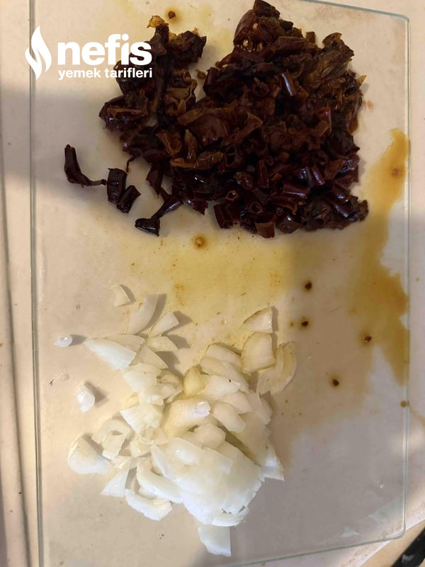 1. Biberleri ve kuru domatesi 5-10 dakika kadar su ile haşlayın.
