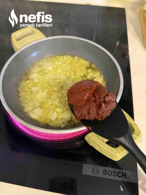 4. Soğanlar yumuşamaya başlayınca salçaları ekleyin.