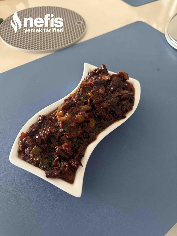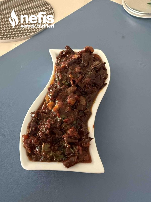 8. Servis tabağına mezeyi alın üzeri cevizle süsleyin dilerseniz altına yoğurt koyup servis edebilirsiniz afiyet olsun.
