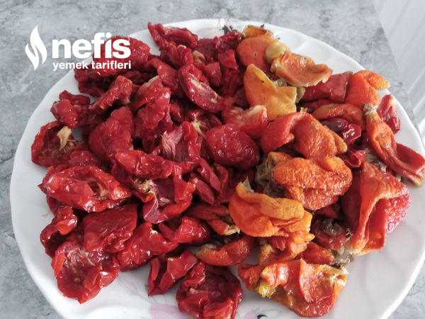 - Doğramış olduğumuz kuru biber ve domatesleri ek edilir bir dakika kadar karıştırılır.