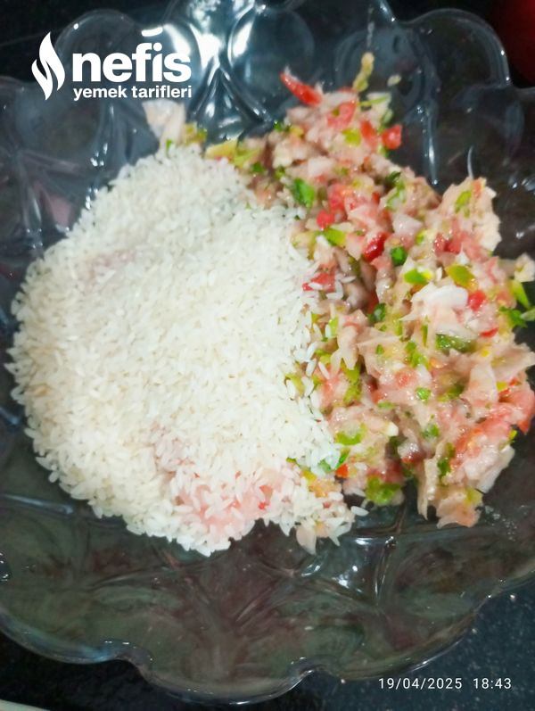 - İlk adım olarak tavuk göğsünü blender dan geçirelim bir karıştırma kabına alalım akabinde soğan biber sarımsak ve domates ise blender dan geçirip ekleyelim pirinci de yıkayıp koyalım bir kaşık salça iki kaşık yağ ve baharatları ekleyip uygunca karıştıralım.